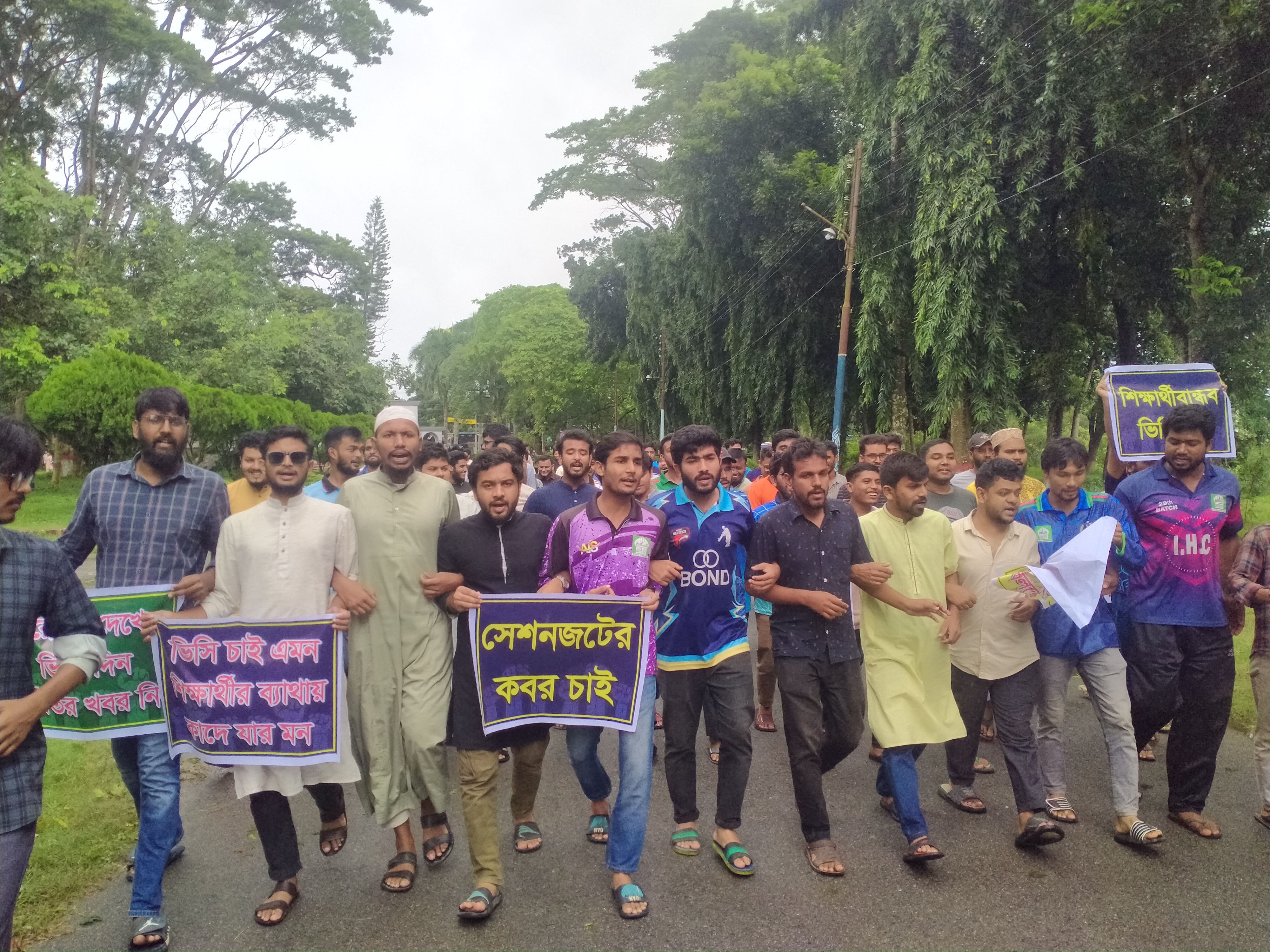 শনিবার (১৪ সেপ্টেম্বর) বিকাল আড়াইটায় বিশ্ববিদ্যালয়ের প্রধান ফটক থেকে বিক্ষোভ মিছিল বের করা হয়। পরে মিছিলটি ক্যাম্পাসের বিভিন্ন সড়ক প্রদক্ষিণ শেষে একই স্থানে এসে ছাত্র সমাবেশে মিলিত হয়। মিছিলে শিক্ষার্থীরা 'রেকর্ড দেখে ভিসি দিন দূর্ণীতির খবর নিন', 'ক্লাস চাই, পরীক্ষা চাই, অবিলম্বে ভিসি চাই', 'একাডেমিক স্থবিরতা দূর করতে যোগ্য ভিসি চাই', 'সেশনজটের কবর চাই, শিক্ষার্থীবান্ধব ভিসি চাই'সহ বিভিন্ন লেখা সংবলিত প্লেকার্ড নিয়ে উপস্থিত হয়। সমাবেশে শিক্ষার্থীরা বলেন, আমরা একজন দূর্ণীতিমুক্ত ও শিক্ষার্থীবান্ধব উপাচার্য চাই। যিনি শিক্ষার্থীদের ব্যথায় ব্যথিত হবেন, শিক্ষার্থীদের আকাঙ্খা পূরণে এগিযে আসবেন। আমাদের বিশ্ববিদ্যালয়ের যে উদ্দেশ্য ইসলামী শিক্ষার সাথে আধুনিক শিক্ষার সমন্বয় করে যোগ্য নাগরিক হিসেবে গড়ে তোলা সেই উদ্দেশ্য পূরণে যিনি এগিয়ে আসবেন এমন কাউকে আম্দের উপাচার্য হিসেবে চাই। আমরা কোনো দলবাজ উপাচার্য চাই না। একজন নির্দলীয় উপাচার্যকে আমাদের ক্যাম্পাসে নিয়োগ দেওয়ার দাবি জানাই।