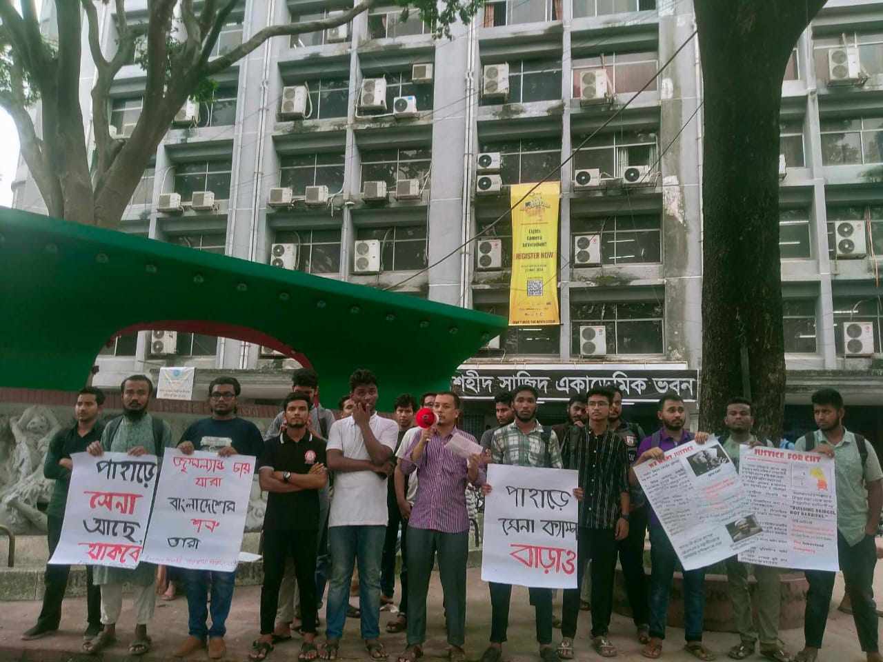 গণযোগাযোগ ও সাংবাদিকতা বিভাগের শিক্ষার্থী জহিরুল ইালাম বলেন, আমাদের পাহাড় নিয়ে ষড়যন্ত্র চলছে। এই পাহাড়কে বাংলাদেশ থেকে বিচ্ছিন্ন করার জন্য কিছু লোক কাজ করছে। এই ক্ষুদ্র নৃগোষ্ঠী আমাদের অনেক বাঙালিকে হত্যা করেছে। তারা বাঙালীদের সেটলার (বসতি স্থাপনকারী) বলে ঘোষণা দিচ্ছে। আমাদের দেশের সেনাবাহিনীর বিরুদ্ধে নিয়মিত খারাপ মন্তব্য করছে। আমাদের দেহে এক বিন্দু পরিমাণ রক্ত থাকতে এই পাহাড়কে কখনো বাংলাদেশ থেকে বিচ্ছিন্ন হতে দিবো না।