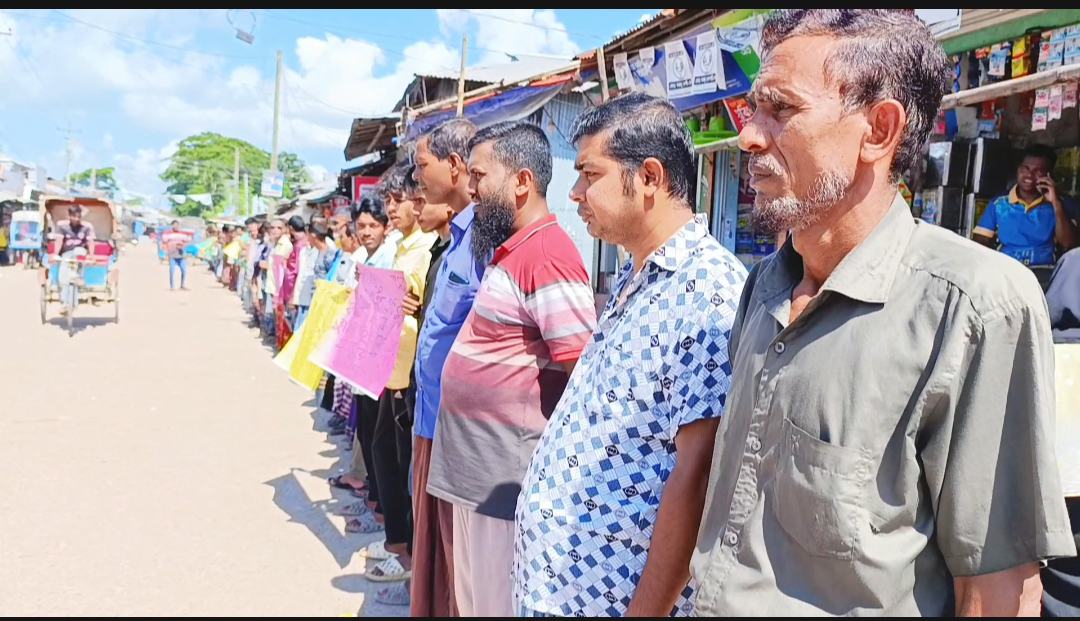 শনিবার (১২ অক্টোবর) সকাল আনুমানিক ১০টার দিকে তালতলী বাজারে ঘণ্টাব্যাপী এ মানববন্ধন করেন রাখাইন,হিন্দু,মুসলিম সম্প্রদায়ের শতাধিক মানুষ।